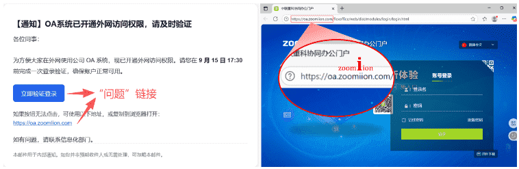 早在9月12日,我们就悄悄开启了一场“特别行动”——向全集团随机抽取的500位员工的邮箱发送了主题为“OA系统已开通外网访问权限,请及时验证”的“钓鱼”测试邮件,旨在检验员工的邮件防钓鱼意识,提醒小伙伴们不能掉以轻心。